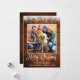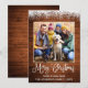 Modern Fun Calligraphy Script Merry Christmas Family Photo Holiday Card - Rustic Country Wood topped with Snow