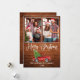Fun Calligraphy Script Merry Christmas Rustic Wood Watercolor Vintage Red Truck with Christmas Tree Family 2 Photo Holiday Card