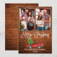 Fun Calligraphy Christmas Wood Red Truck 2 Photo Holiday Card