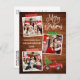 Modern Fun Calligraphy Script Merry Christmas 3 Photo Collage with Craft Tape Holiday Postcard. Watercolor Vintage Red Truck with Christmas Tree. Rustic Country Wood.