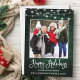 Modern Fun Calligraphy Script Happy Holidays Family Photo Holiday Card - Rustic Country Green Wood with String Lights