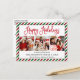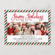 Modern Fun Calligraphy Script Happy Holidays 3 Photo Postcard - Green and Red Candy Cane Glitter Stripes - Red Script