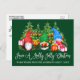 Fun Calligraphy Holly Jolly Christmas Gnomes Green Postcard