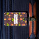A personalised luggage tag designed with a cute camping pattern. Camping themed items such as an orange campfire, a green tent, an acoustic guitar and other nature elements like trees, leaves, and also a backpack and shovel and canteen. Cool outdoorsy pattern.