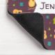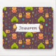 A personalised mousepad designed with a cute camping pattern. Camping themed items such as an orange campfire, a green tent, an acoustic guitar and other nature elements like trees, leaves, and also a backpack and shovel and canteen. Cool outdoorsy pattern.