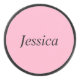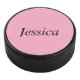 A pink puck with black letters makes for a nice game at the rink. Choose from many different backgrounds and styles of letters. You can change the name, add more names, replace the name with a message, and so on. You can also delete text. By Sharon Lee Hudson.