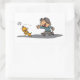 Fun Cartoon Boy and Dog Playing Fetch Rectangular Sticker