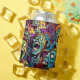 Multiple cartoon-like zombie faces, each with exaggerated expressions, cover the flask’s surface. These zombies exhibit various skin tones—green, purple, and blue—and sport wide eyes and open mouths, revealing sharp teeth. Some appear to be screaming, while others convey shock or horror. The intricate design creates a sense of chaos and intensity, making it appealing for fans of horror-themed artwork.