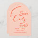 Free drinks and a wedding! A casual, simple and modern save our date invitation in bold peach blush and orange with contemporary script typography. A funny and minimal save the date perfect for a fun loving couple looking for a unique and unconventional wedding stationery that matches their vibrant personality.