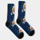 Fun Cat Photo Navy Blue Tropical Hawaiian Socks