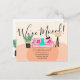 We have moved! A cute and fun quirky illustration of a living room with a pink sofa, pillow, lamp, house plant and a cat, with a teal trow blanket and a knitting kit moving announcement and an elegant and modern script calligraphy typography. The wall floor and rug colours are all fully editable and moveable!