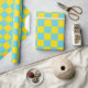 Fun Check Bright Yellow and Cyan Aqua Blue Pattern Wrapping Paper