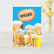 A fun and humorous graphic design featuring beer mugs with frothy tops resting on top of pretzels and yellow cheese set against a background color of your choice. This card is perfect for any special celebration that the guys want to celebrate with the men - retirement; farewell; congratulations; graduation; new dad; new job; new business. The only limitation is your imagination.