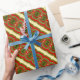 This playful classic printed gold, red, magenta, green and white striped gift wrap is the ultimate chic and urban Christmas wrapping paper. The deep red, magenta and moss green colours contrast with the bright and shiny gold effect creating a fun, classic striped pattern. Hard fractal edges give this contemporary, colourful pattern a modern, city, psychedelic, urban art edge with a classic, vintage and traditional feel. The intricate, striated design is small in size and laid out in diagonal orientation.