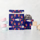 A roll of wrapping paper for Christmas, with a pattern of Santas, Holly and Ho, Ho, Ho on a dark blue background that you can easily change, using the Edit button. The design is from a handpainted paper collage by Judy Adamson.