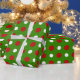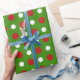 Fun red and white Polkadots on green wrapping Paper