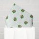 These tissue paper sheets are white with vibrant green polka dots and a scattering of fun Christmas skeletons wearing red Santa hats in wavy bright green and red circles. Skeletons are holding ornaments up to their eyes.