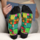 Artistic socks featuring a fun abstract geometric pattern in green and red colours, inspired by leaded glass windows. You can scale, drag and rotate the pattern if you like. Beautiful for Christmas.