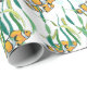 A colourful school of orange white and black clown fish swim through green sea weed and blue bubbles on this unique and delightful wrapping paper. Sure to please your favourite fish lover.