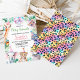 This colorful safari themed birthday invitation can be used for any age and features several jungle animals, party hats, disco ball, foliage and colorful dots.