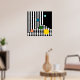 Fun coloured bouncing balls in an isometric room in black and white is the theme of the poster wall decor. The room isometry shows a diamond chequered floor, one striped wall, and one solid-coloured wall. Customise any background colour with black and personalise the coloration of the circular shapes.  For enquiries about custom designs, please feel free to contact us at https://t.me/KBMD3signs_chat.