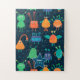 Fun Colourful Alien Pattern for Kids on Blue Jigsaw Puzzle