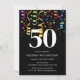 Fun Colourful Confetti Ribbon Black 50 Birthday Invitation