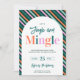 Modern Colourful "Jingle and Mingle" Holiday Party Invitation. Featuring a festive pink, red, mint and green stripe pattern combined with playful script and colourful typography, this design adds a fun, contemporary twist to classic holiday charm. Personalise with your event details in the “Personalise this template” section to set the tone for an unforgettable Christmas Party celebration! Choose between prints or a digital download invitation.