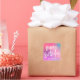These modern birthday party stickers feature a colourful gradient background in shades of pink, aqua, and purple with white brush script and modern typography. The brush script greeting says "Happy Birthday". You can also remove the gradient background and replace it with a solid colour of your choosing. Just click on "customise design" in the personalisation drop-down menu.