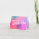 This modern thank you card features a colourful gradient background in shades of pink, aqua, and purple with white brush script "thank you" and modern typography for the name. You can also remove the gradient background and replace it with a solid colour of your choosing. You can even add a photo to the inside! Just click on "customise design" in the personalisation drop-down menu.