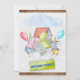 © Socialite Designs & LICENCORS. Fun, colourful and whimsical animal birthday party invitation with charming animals holding ballons and flowers, and a house in the background. A wonderful invitation for a young boy's birthday party.