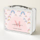 Fun Colourful Pink Rainbow Girly Monogram Metal Lunch Box