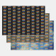 This colourful and vibrant wrapping paper sheet set features the number "17" with a multicolored rainbow spectrum inspired gradient pattern look. One sheet has a black coloured background, one sheet has a faux woodgrain look pattern background, and one sheet has a cloudy sky inspired pattern background. Fun wrapping paper like this might be used when preparing presents or gifts being given to celebrate somebody’s seventeenth birthday, or perhaps a married couple’s 17th wedding anniversary, or some other 17th event. [~Z0000441]