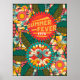 Fun Colourful Retro Summer Fever Floral Poster