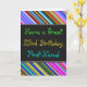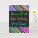 This fun, colourful and whimsical birthday-themed greeting card design features a warm birthday wish like "Have a Great 23rd Birthday, First-Name!" on the front. The name on the front can be customised. The top and bottom of the front feature vibrant, multicolored stripes. The inside features a customisable birthday message. A greeting card like this could be a fun way to deliver birthday wishes to somebody who is celebrating their twenty third birthday. [~Z0000269]