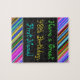 This fun, colourful and whimsical birthday themed puzzle design features a warm birthday wish like "Have a Great 48th Birthday, First-Name!". The name can be personalised. There are also multicolored stripes at the top and bottom. A puzzle like this could be a fun way to deliver birthday wishes to somebody who is celebrating their forty eighth birthday. [~Z0000268]