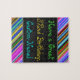 This fun, colourful and whimsical birthday themed puzzle design features a warm birthday wish like "Have a Great 52nd Birthday, Custom-Name!". The name can be personalised. There are also multicolored stripes at the top and bottom. A puzzle like this could be a fun way to deliver birthday wishes to somebody who is celebrating their fifty second birthday. [~Z0000268]