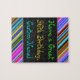 This fun, colourful and whimsical birthday themed puzzle design features a warm birthday wish like "Have a Great 96th Birthday, Custom-Name!". The name can be customised. The top and bottom feature a vibrant, multicolored stripe pattern. A puzzle like this could be a fun way to deliver birthday wishes to somebody who is celebrating their ninety sixth birthday. [~Z0000268]