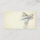 A fun colourful whimsical scissors original design on an off white  background is ready to personalise for a custom business card stylist or salon. Art copyright Ann Powell all rights reserved.