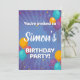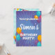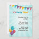 Fun balloon birthday party invitation with streamers, confetti and balloons. Filled with fun colors of teal, orange, red and purple which makes it great for any gender.