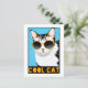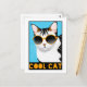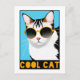 This playful and simple cartoon illustration features a cat with the text "COOL CAT" prominently displayed in bold, orange letters at the bottom. Set against a blue background, the cat's ears are clearly visible at the top of the image, though the central portion of the face is partially blurred. The bright and fun design captures a whimsical and lighthearted vibe, perfect for fans of cheerful and quirky art.