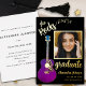 Celebrate your graduate daughter with a vibrant country music themed black and gold foil graduation party invitation, featuring purple pink guitar artwork. The design showcases a bold, acoustic guitar capturing a fun, energetic vibe with gold foil strings and pick guard. Accented with gold foil and black calligraphy and musical notes, it perfectly reflects the excitement of the occasion. The front highlights your daughter’s name and graduation details in contemporary gold foil typography, while the back offers space for additional grad information. An easy-to-use photo template lets you add a cherished image, making it a personal keepsake. Designed by artist Catherine Sweetman, this card blends artistic flair and modern elegance, making it the perfect way to celebrate her milestone in style.