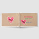 Whimsical home made looking wedding guest book done in craft paper looking background, with a white outlined pink heart. Colourful graffiti like typography gives this guest book a home made feel. Personalise all the text to suit your wedding needs.