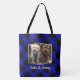 Fun Custom 2 Photo Frame Blue & Black Plaid Tote Bag