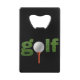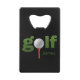 A fun custom sports design for the golfer on a cool black background, the word golf is written in typographic letters filled with beautiful green grass, the "O" is a golf ball on a red tee. You can easily personalise the bottle opener by clicking "Customise it".
