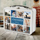 Modern, personalised Instagram photo collage lunch box for the best Back to School day ever. A perfect gift also for a child's birthday! He'll love carrying his favourite people around wherever he goes and it will help ease anxiety over the first day of school. This custom name design leaves space for a sweet message from mum and dad. This is the blue / stainless steel version.