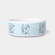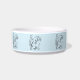 A fun colourful cat bowl featuring an adorably cute kitty line drawing with a light blue background.