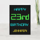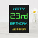 This simple and fun birthday greeting card design features a message like "HAPPY 23rd BIRTHDAY, JENNIFER!". It also features a fun look inspired by digital computing. The name on the front and the message on the inside can be personalized. It could be sent or given to somebody who is celebrating their twenty third birthday, and who perhaps works (or worked prior to retirement) as a database administrator, a computer programmer, a network administrator, a software developer, an electrical engineer, or who otherwise enjoys using computers. [~Z0000100]