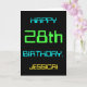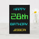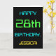 This simple and fun birthday greeting card design features a message like "HAPPY 28th BIRTHDAY, JESSICA!". Its appearance is inspired by the field of digital computing. The name on the front and the message on the inside can be personalised. It could be sent or given to somebody who is celebrating their twenty eighth birthday, and who perhaps works (or worked prior to retirement) as a computer programmer, a software developer, a database administrator, a network administrator, an electronics engineer, or who otherwise enjoys using computers. [~Z0000100]
