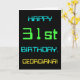 This simple and fun birthday greeting card design features a message like "HAPPY 31st BIRTHDAY, GEORGIANA!". It also features a fun appearance inspired by digital computing. The name on the front and the message on the inside can be customised. It could be sent or given to somebody who is celebrating their thirty first birthday, and who perhaps works (or worked prior to retirement) as a computer system administrator, a computer programmer, a network administrator, an electrical engineer, a software developer, or who otherwise enjoys using computers. [~Z0000100]